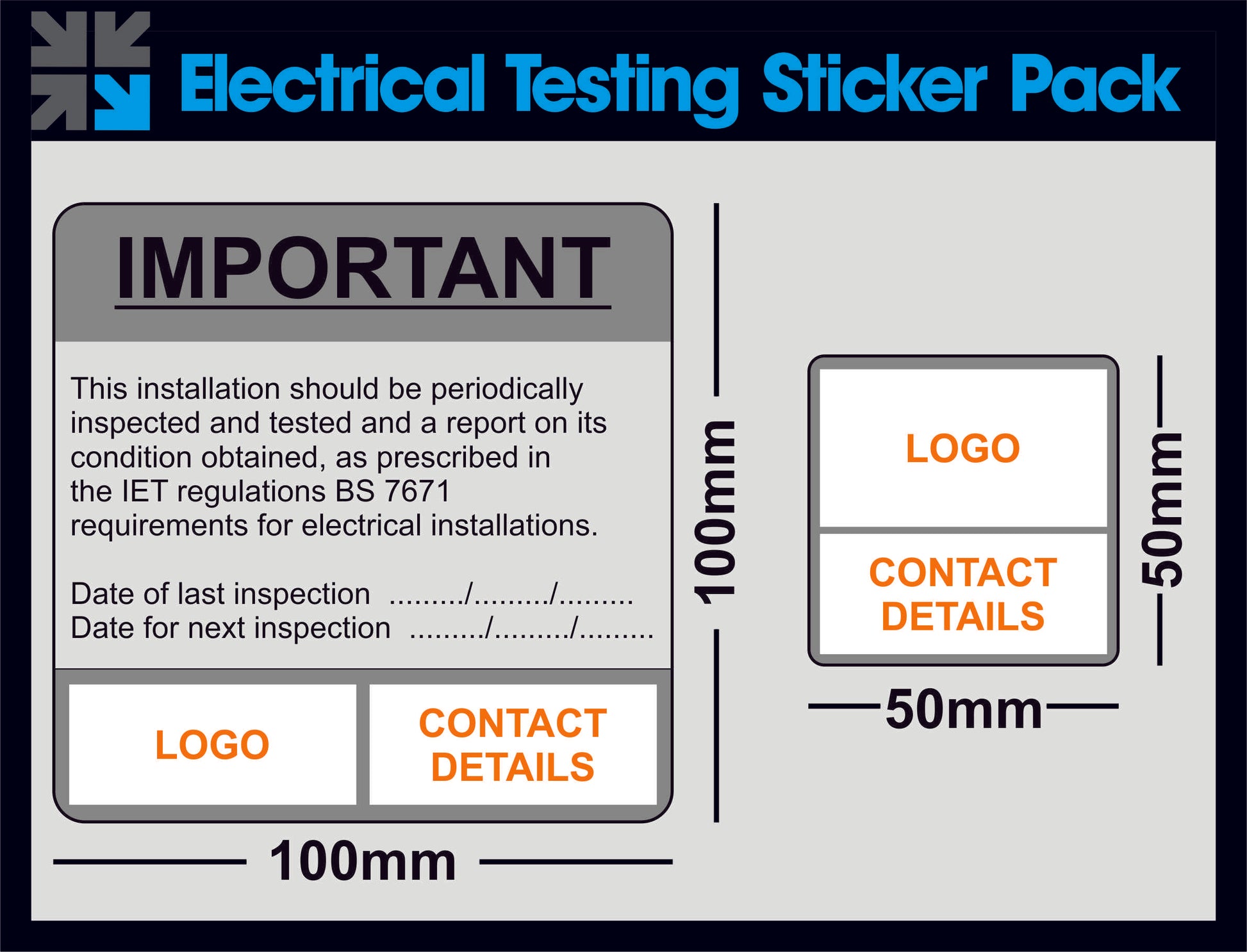 Electrical Testing Stickers, supplied along side a branding sticker